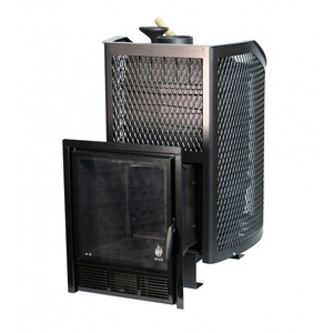 Печь банная чугунная Амур с закрытой каменкой. Панорамная дверца (сетка)
