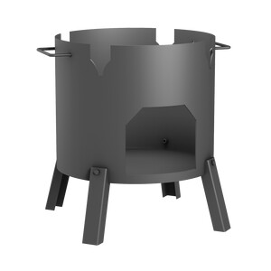 Простая и надежная переносная печь для приготовления пищи в казане. Может использоваться как уличный очаг. Конструкция печи - разборная, из листовой стали толщиной 3 мм. Ёмкость используемых казанов: 12-25 литров. Казан в комплектацию не входит.