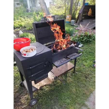Получили мангал! Очень хороший! Вот пробуем) На печь еще не ставили трубу